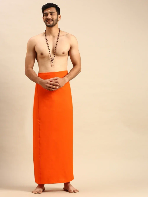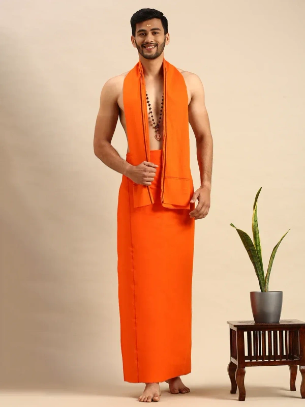 The attire will not only make you feel closer to the lord, but also be at ease.The devotional dhoti for men is made of pure cotton fabric,and its give a complete devotional look.Traditional wear for religious festivals.The fine quality of cotton yarns used this makes the wearer feel more comfortable.Shop exclusive devotional dhoti collection in online.