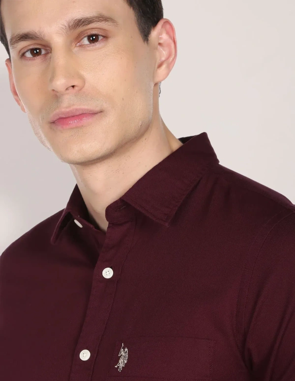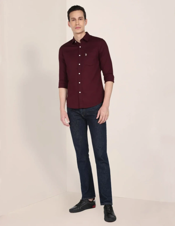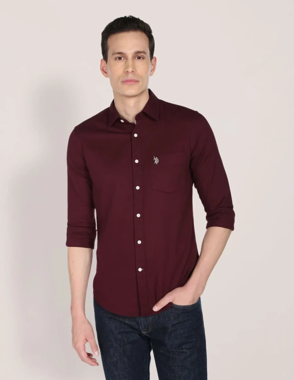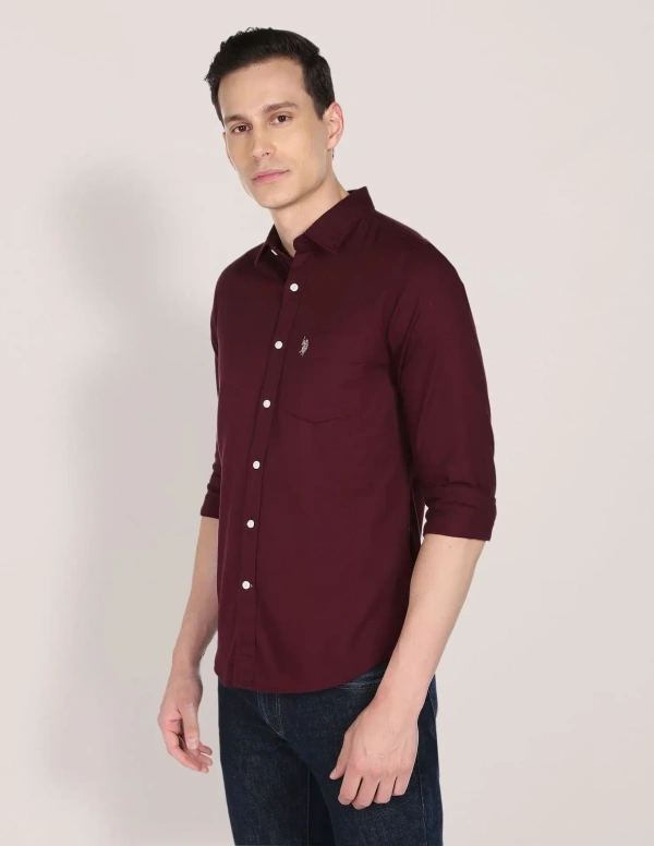 - Button-down collar- Full button placket- Long sleeves with rounded cuffs- Brand logo on chest- Curved hemline- Solid pattern- Oxford weave- Brand fit: Tailored fit- Fit mapping: Regular fit- Core
